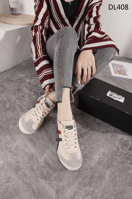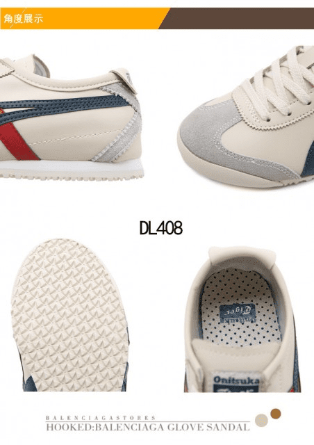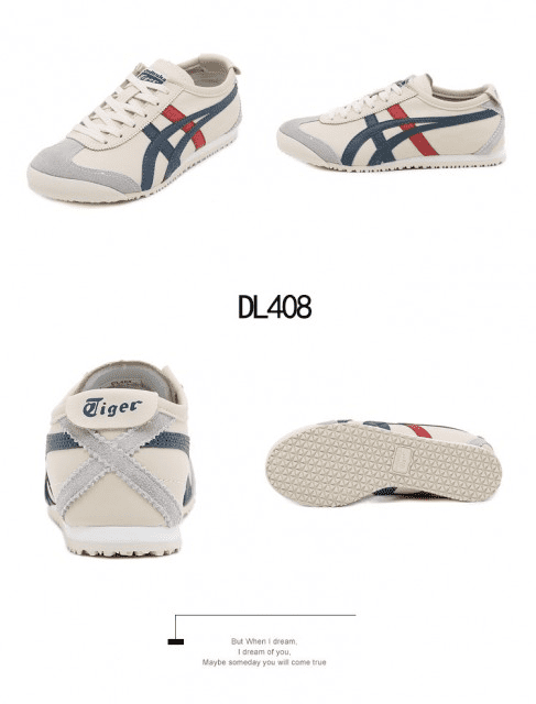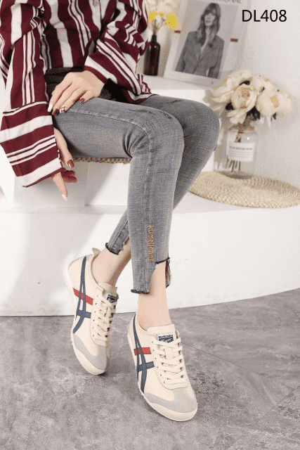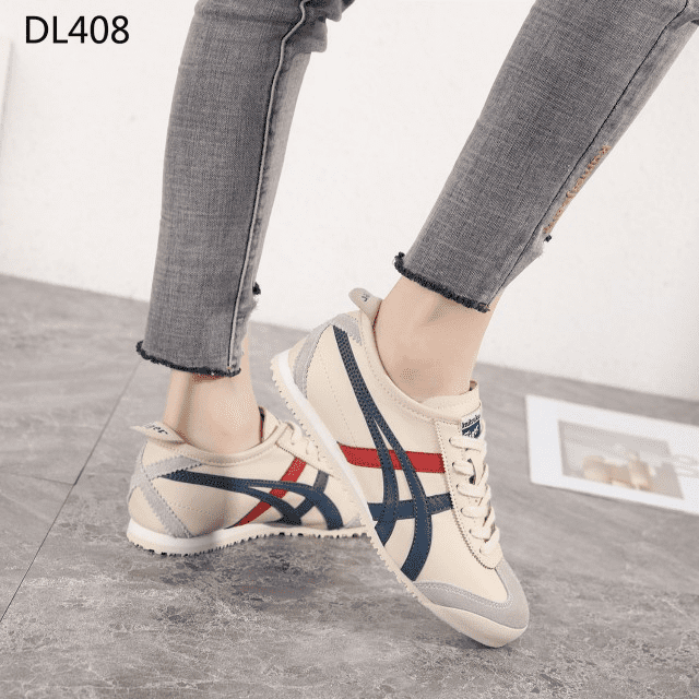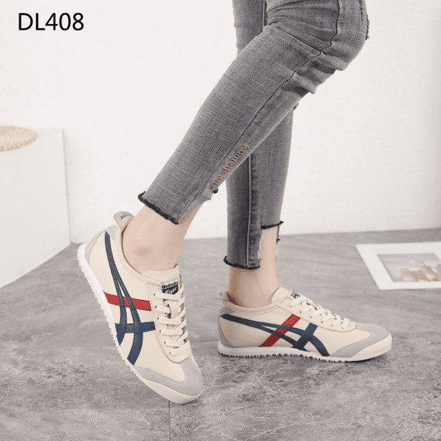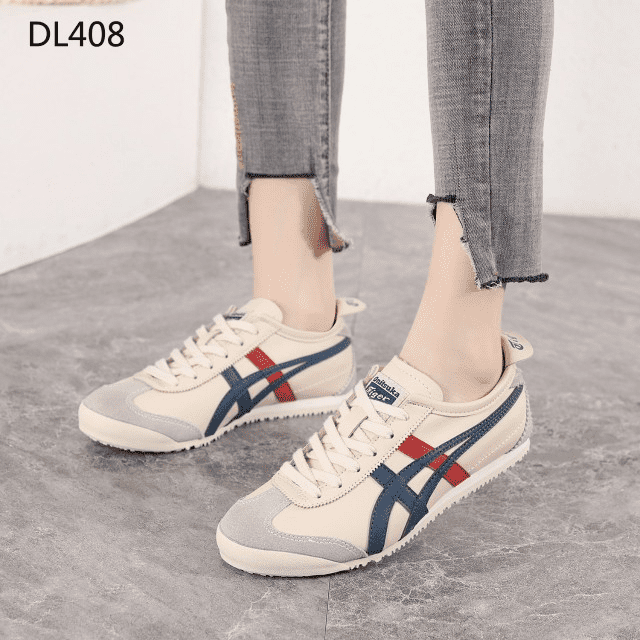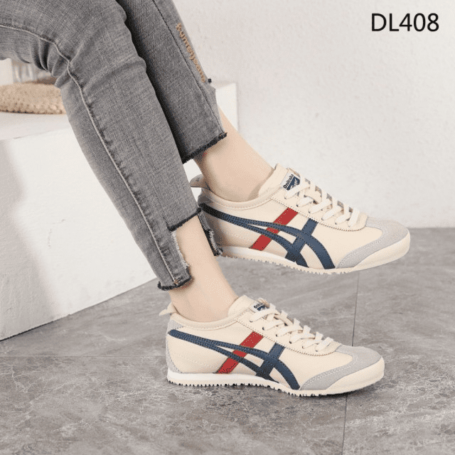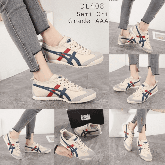 Sepatu Onitsuka Women Tiger Beige List Navy Red Sneakers DL408 Semi Original (Kode: SFA169)