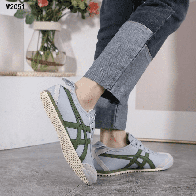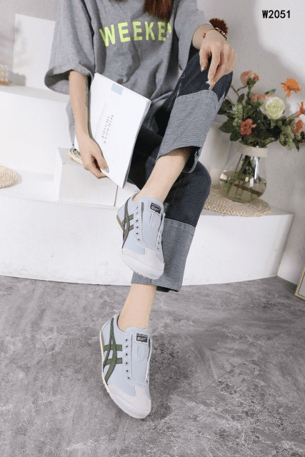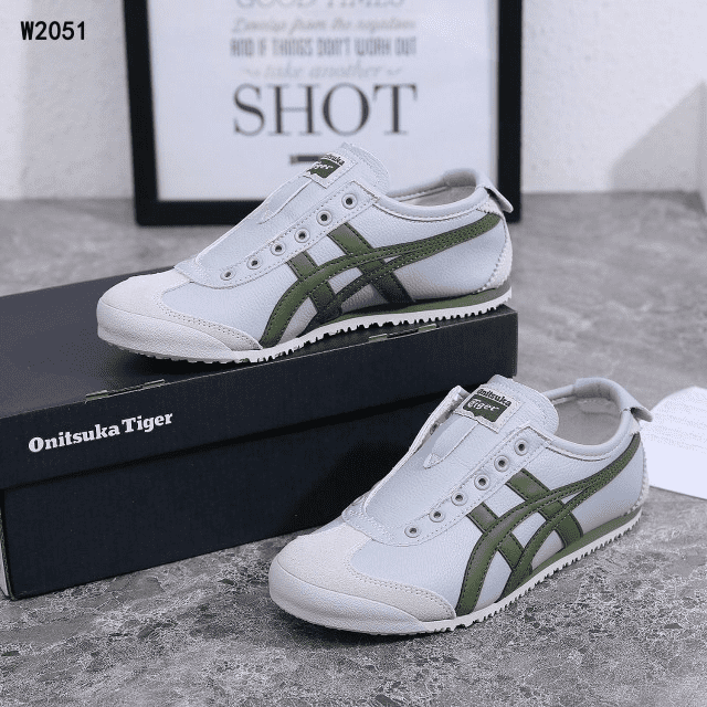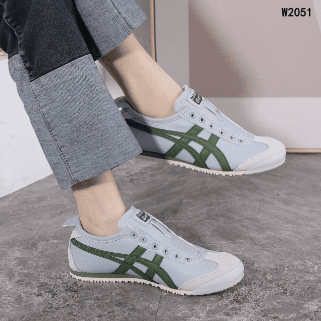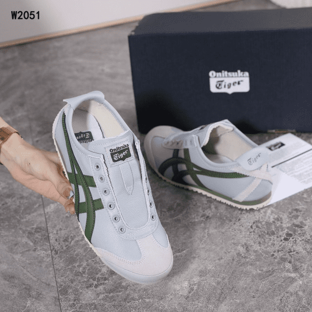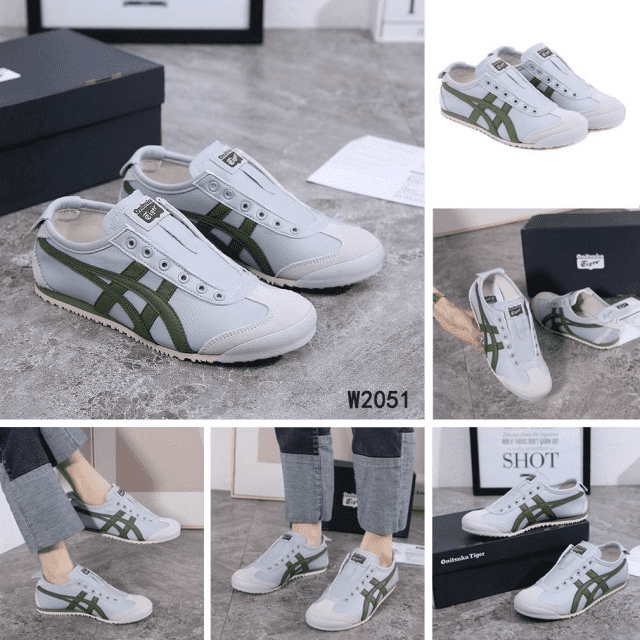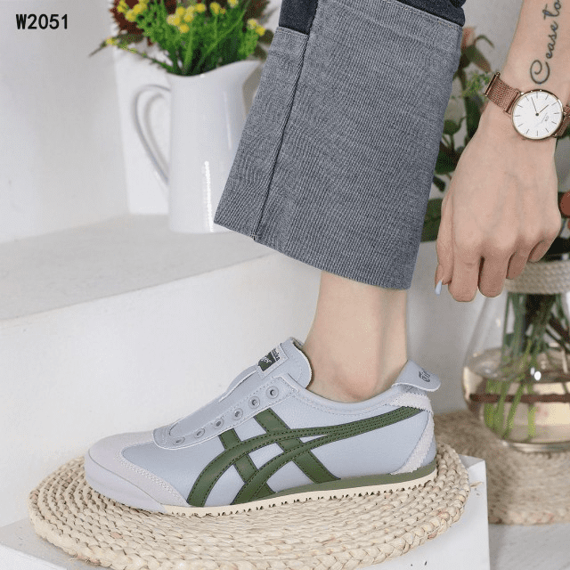 Sepatu Onitsuka Women Tiger Slip On Grey List Green W2051 Semi Original (Kode: SFA170)